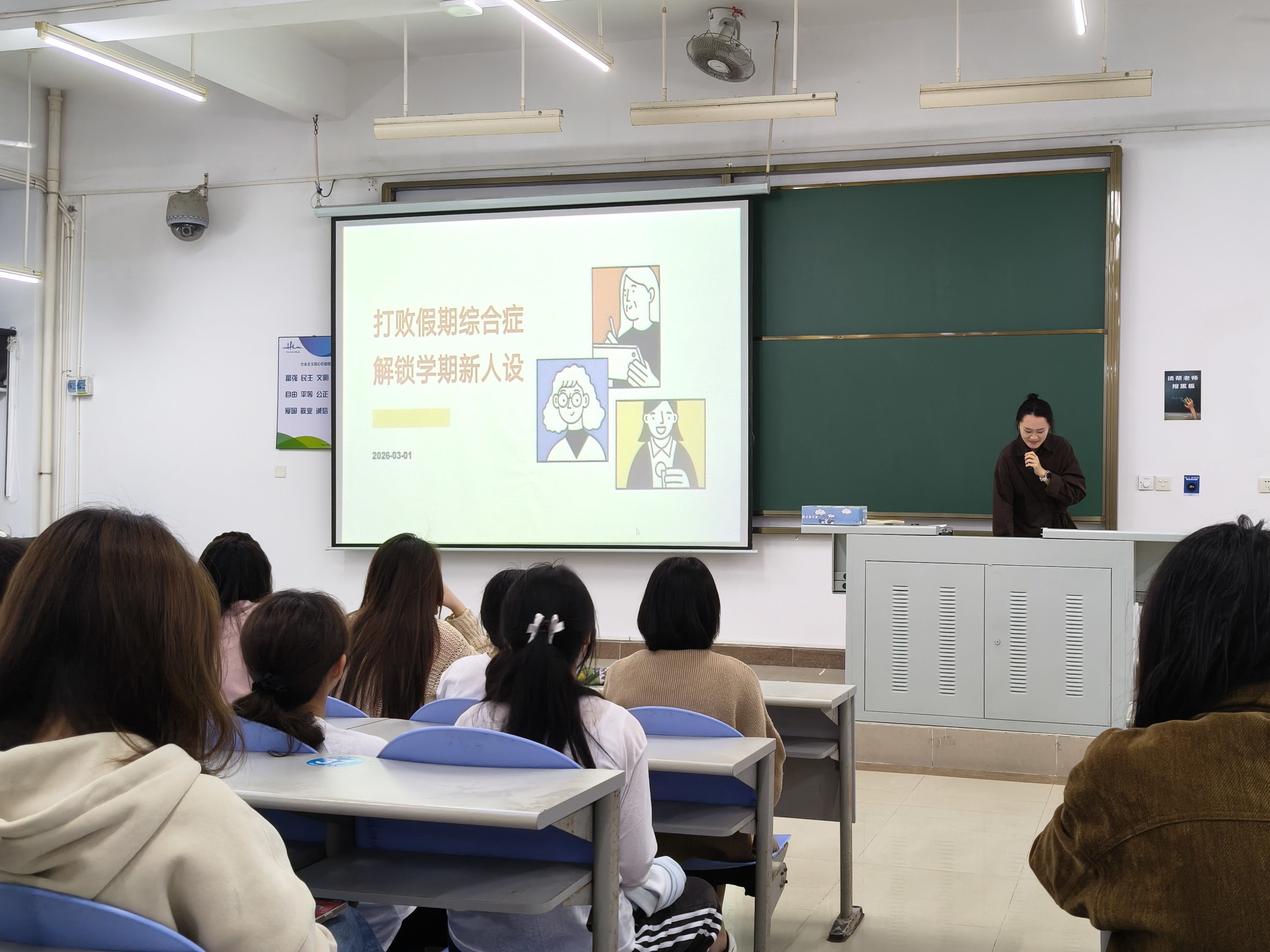 会上,各年级辅导员首先强调了学风建设的重要性,要求同学们严格遵守课堂纪律,上课需带齐教材、笔记本和笔等基本学习用品,以饱满的精神状态迎接新学期。针对校园安全,辅导员重点提醒同学们要筑牢宿舍安全意识,杜绝违规电器,确保人身财产安全。同时,会议特别提示参加缓考、补考的同学关注考试时间,认真备考。此外,会议要求全体学生干部以身作则,在学风建设、班级管理和服务同学中发挥模范带头作用,共同营造积极向上的学习和生活氛围。
